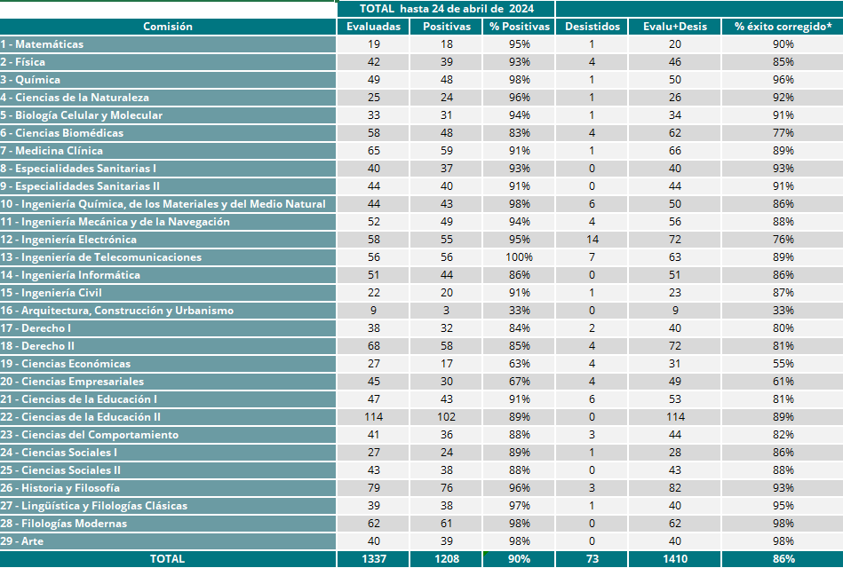 En un ejercicio de transparencia inédito hasta ahora, podrá visibilizarse semanalmente el descenso en el número de expedientes presentados hasta el 31 de marzo pendientes de resolución. La información con los resultados positivos y negativos que se publicará por ANECA no reflejará, sin embargo, el excepcional trabajo desarrollado por las comisiones (que también incluye las peticiones de documentación complementaria y las resoluciones pre-negativas).