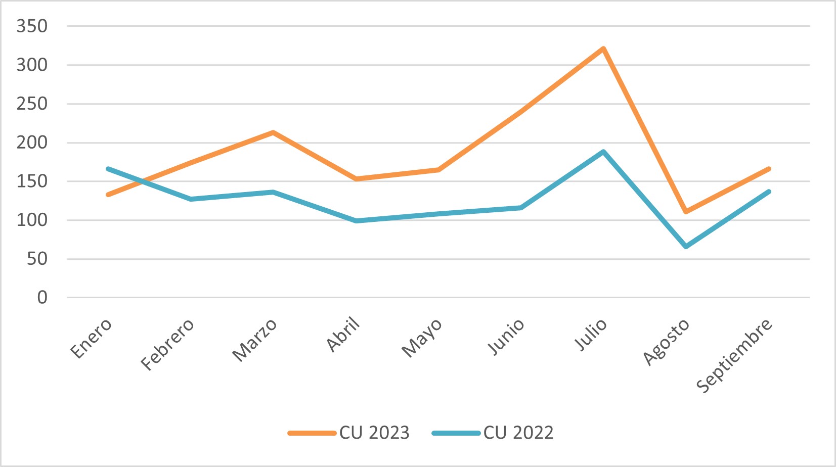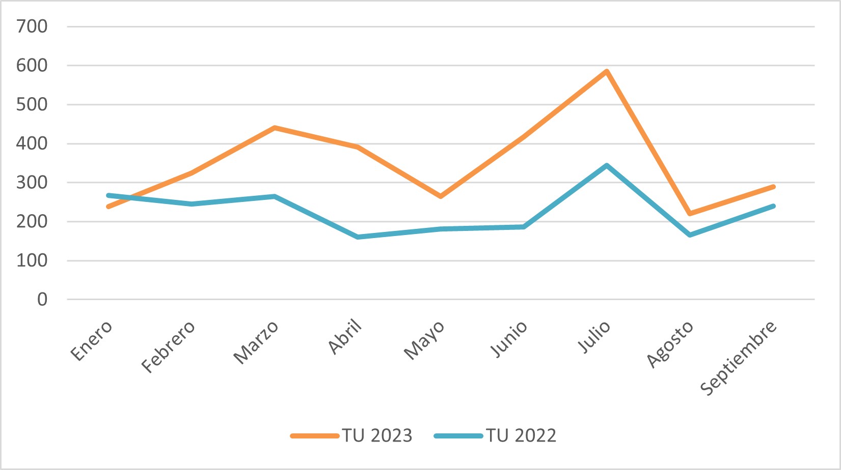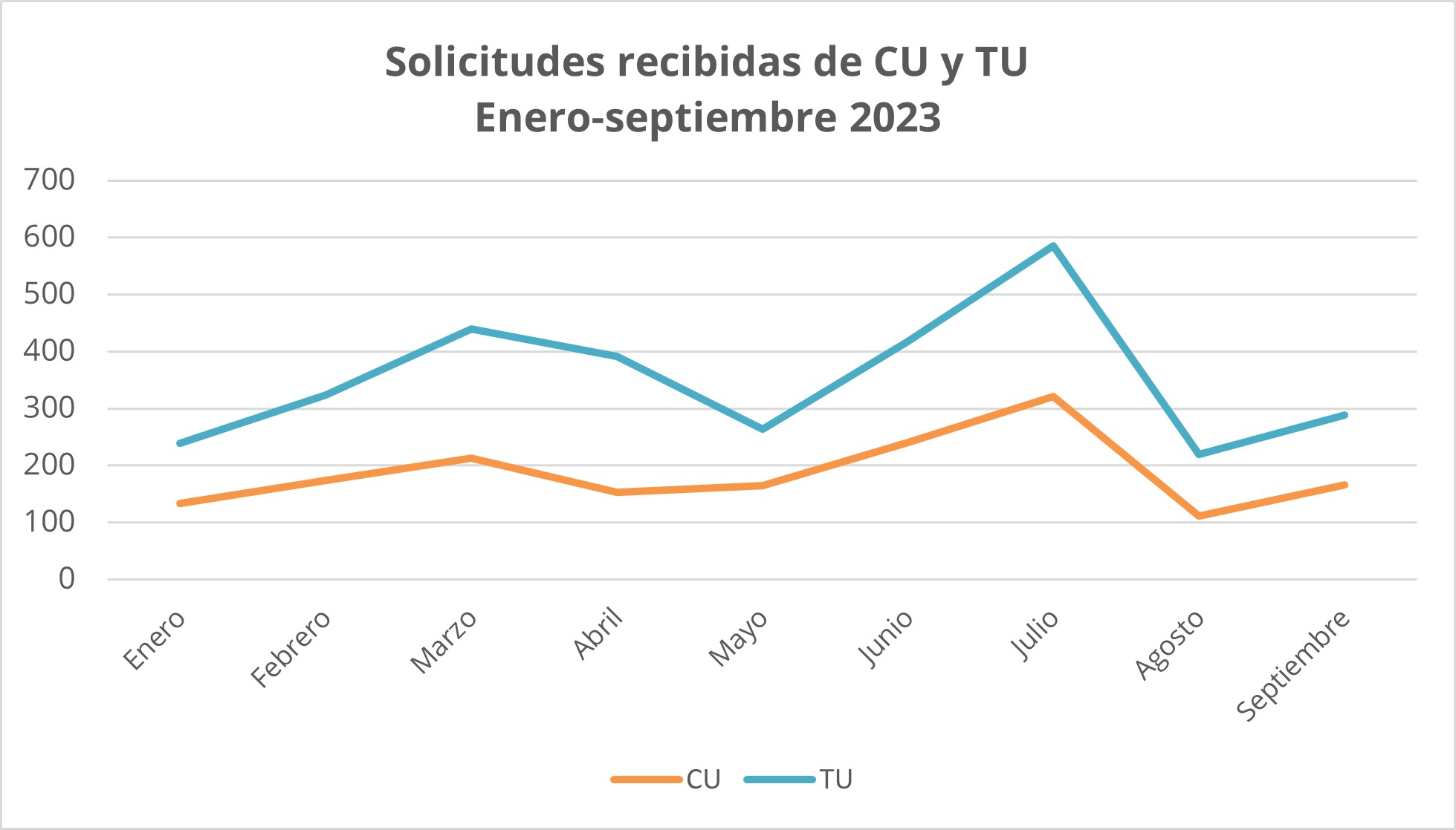 Comparativa solicitudes recibidas de CU y TU. Enero-septiembre 2022 y 2023